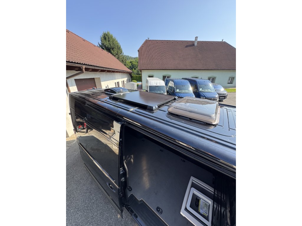 Všechny důležité komponenty (baterie, měnič, LED světla, solár) jsou předem namontovány a připraveny k dalšímu využití. Ideální řešení přípravy pro svépomocnou vestavbu.
