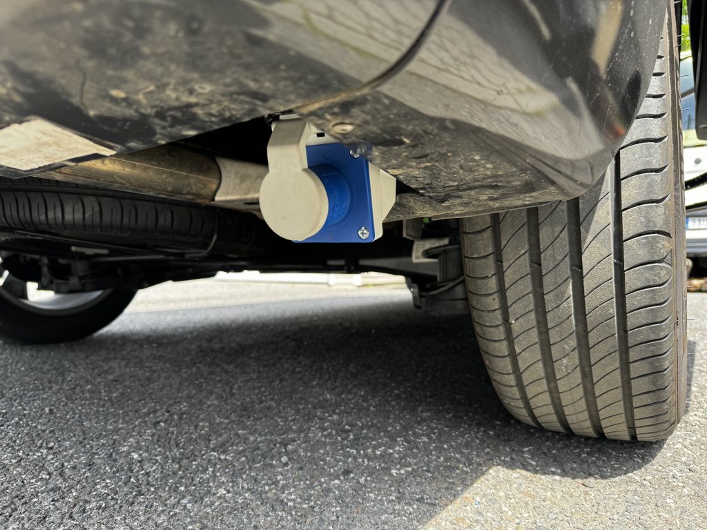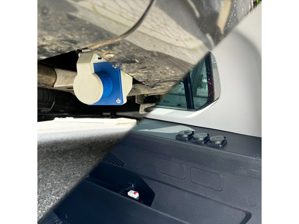 Venkovní CEE a vnitřní zásuvka 230V do Toyota Proace City Verso. Vnitřní zásuvky jsou funkční po připojení na venkovní CEE zásuvku 230V.