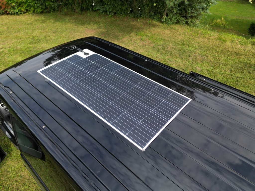 - Solání systém - solární panel flexi (velikost dle možností), Modul MPPT VictronEnergy s bluetooth, pojistkový odpojovač