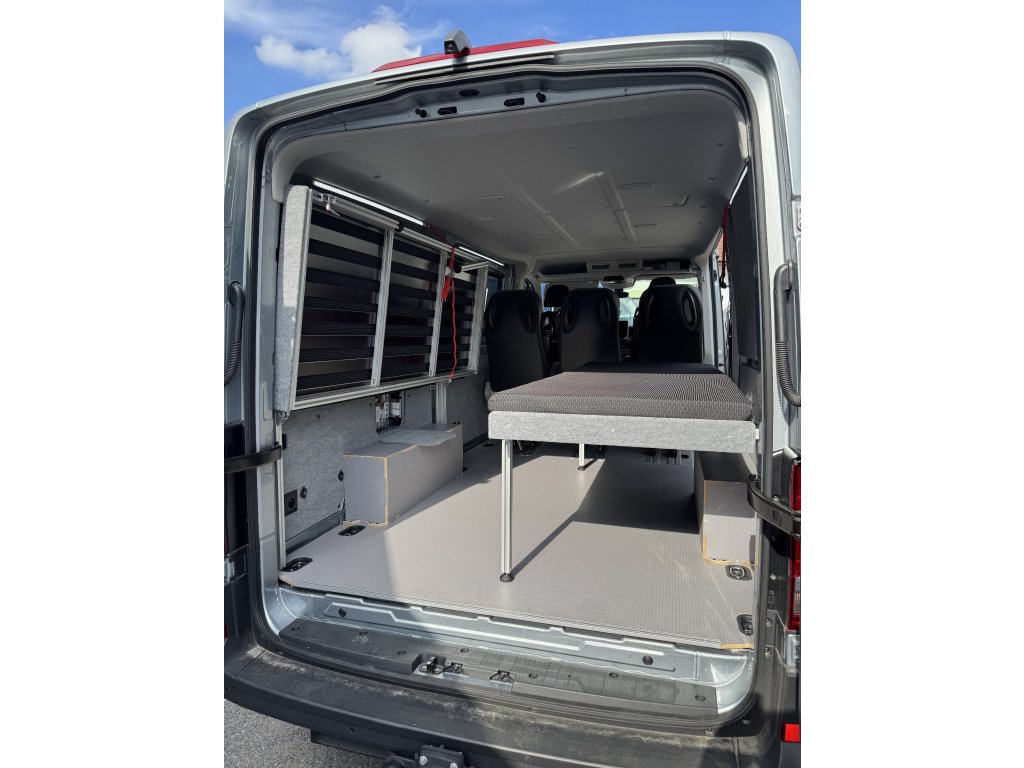 Funkční přestavba s postelí a sedadly. Přestavba do dodávky dělána do akce. Využijte svou dodávku na 110%, přes týden třeba jako pracant a o víkendech výborný společník na výlety. Vše co je v nákladovém prostoru dodávky lze demontovat.